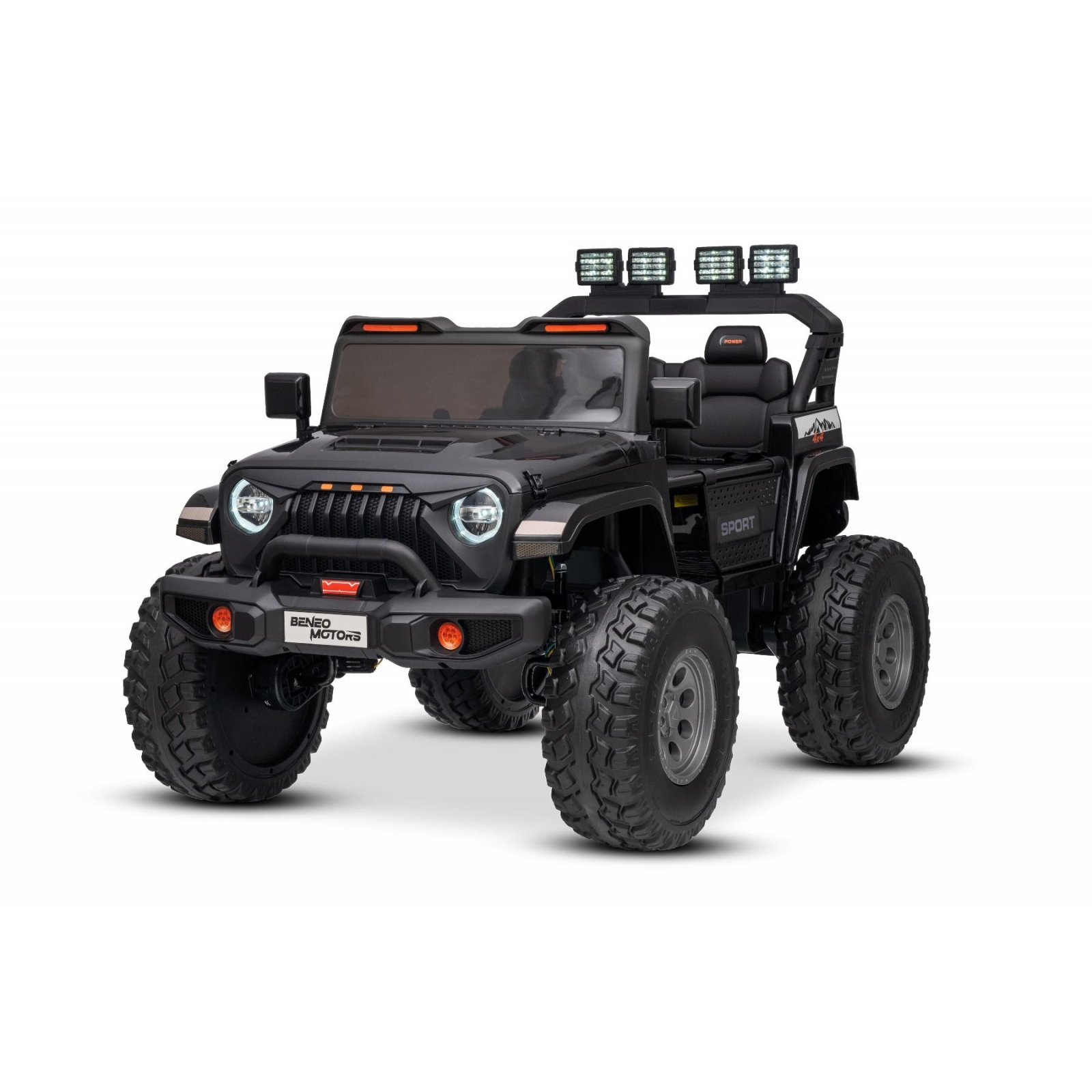 Elektrické autíčko Beneo Motors OFFRIDE 4x4² Dvojmiestne 12V, čierne, MP3 Prehrávač s USB/AUX vstupom, Pohon 4x4, Lítiová Batéria, EVA kolesá s odpružením, Diaľkový ovládač, LED Svetlá