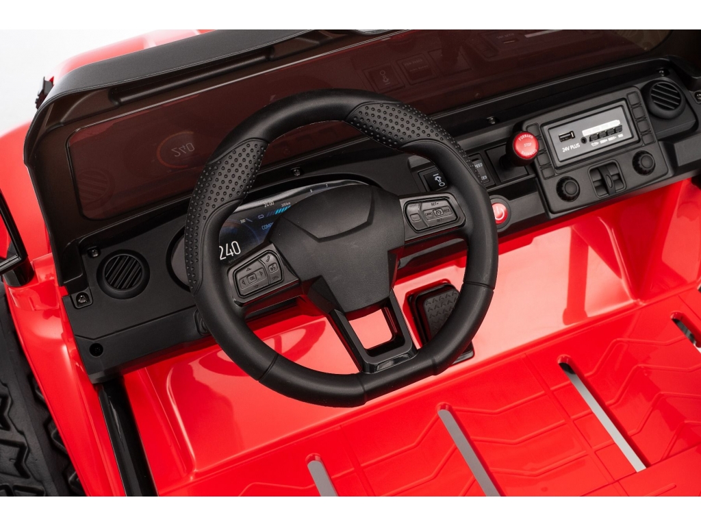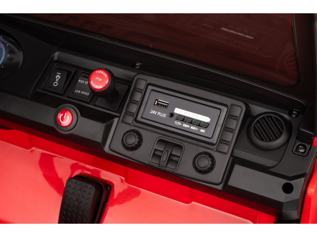 Toto elektrické autíčko zaujme nielen svojím dizajnom, ale aj bohatou výbavou. Je vybavené svietiacimi LED svetlami vpredu aj vzadu, ktoré nielen zvyšujú viditeľnosť, ale aj dotvárajú autentický vzhľad skutočného vozidla. Multifunkčný volant obsahuje tlačidlá na efektnú trúbu, detské pesničky aj modernú hudbu. Zabudovaný MP3 prehrávač je vybavený vstupmi USB a AUX a ponúka možnosť ovládania hlasitosti aj prepínania skladieb, vďaka čomu si malý vodič môže jazdu ešte viac užiť.