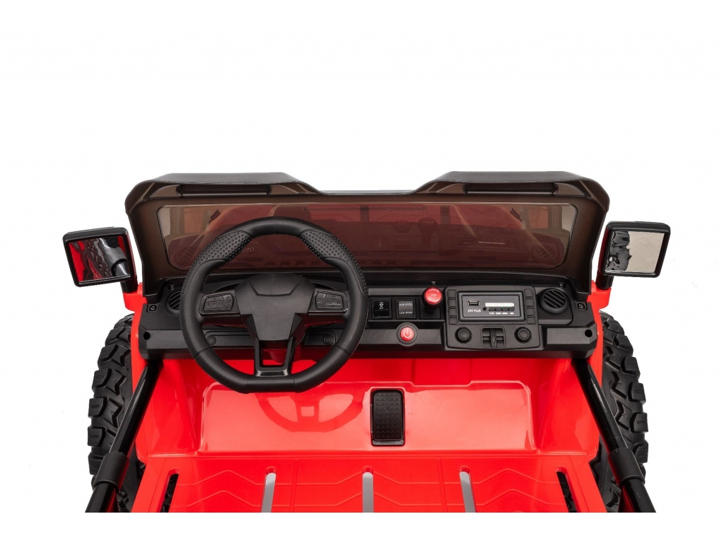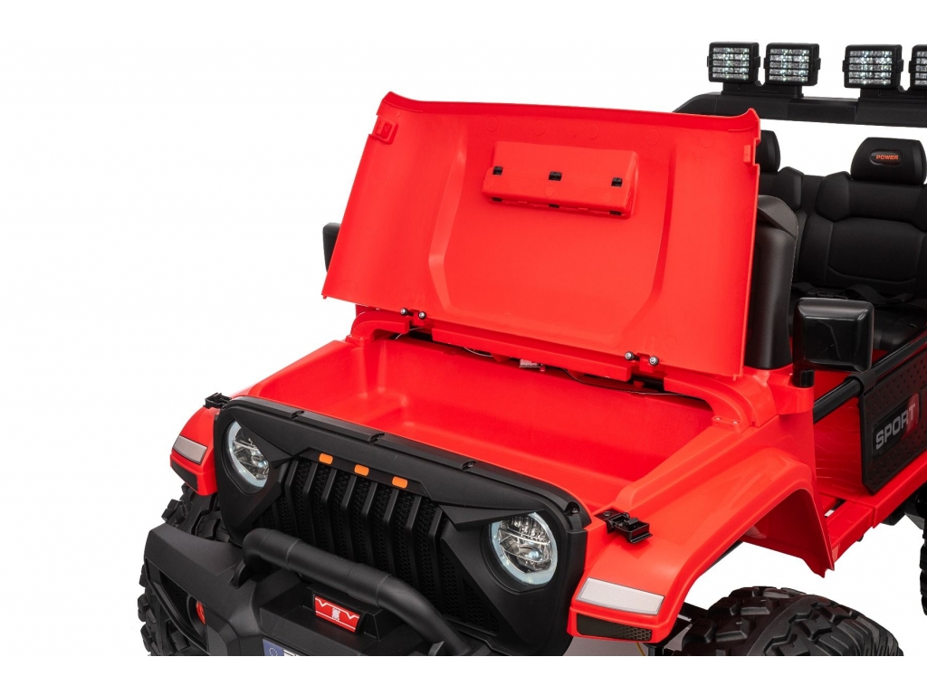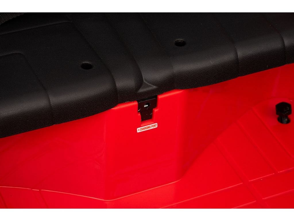 Pohodlie a bezpečnosť zabezpečuje nastaviteľný bezpečnostný pás na sedadle, ktorý udrží dieťa stabilne a bezpečne počas celej jazdy. Autíčko má otváracia kapota, čo zvyšuje zážitok z hry. Na palubnej doske sa nachádza indikátor stavu batérie, ktorý vás včas upozorní, keď bude potrebné dobiť akumulátor.