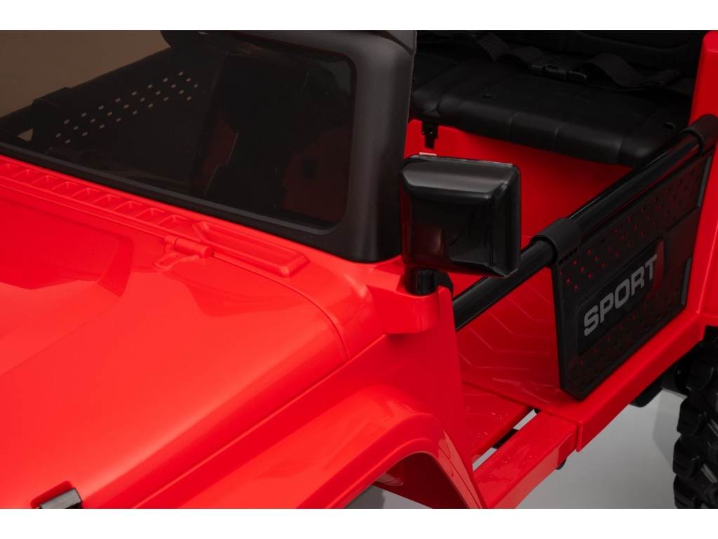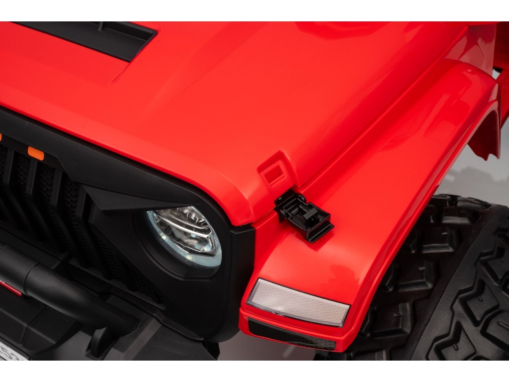 Pohodlie a bezpečnosť zabezpečuje nastaviteľný bezpečnostný pás na sedadle, ktorý udrží dieťa stabilne a bezpečne počas celej jazdy. Autíčko má otváracia kapota, čo zvyšuje zážitok z hry. Na palubnej doske sa nachádza indikátor stavu batérie, ktorý vás včas upozorní, keď bude potrebné dobiť akumulátor.