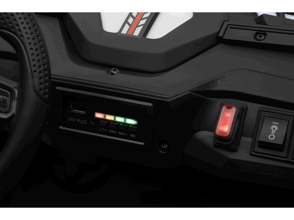 Beneo Elektrické autíčko T-REX Ride 4x4 Dvojmiestne 24V, biele, MP3 Prehrávač s USB/AUX vstupom, Pohon 4x4, Lítiová Batéria, Odpruženie, Diaľkový ovládač, LED Svetlá