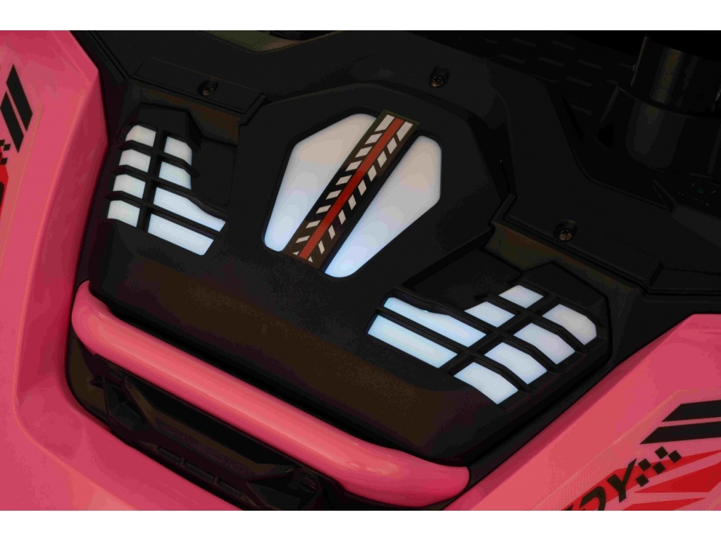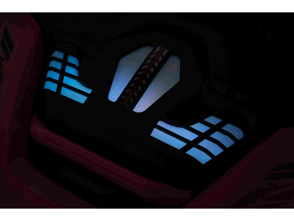 T-REX Ride zaujme nielen výrazným offroad dizajnom, ale aj svojou výbavou. Predné aj zadné LED svetlá spolu s farebným osvetlením kapoty zvyšujú viditeľnosť a dotvárajú zaujímavý vzhľad vozidla. Multifunkčný volant ponúka efektnú trúbu, detské pesničky či zvuky motora.