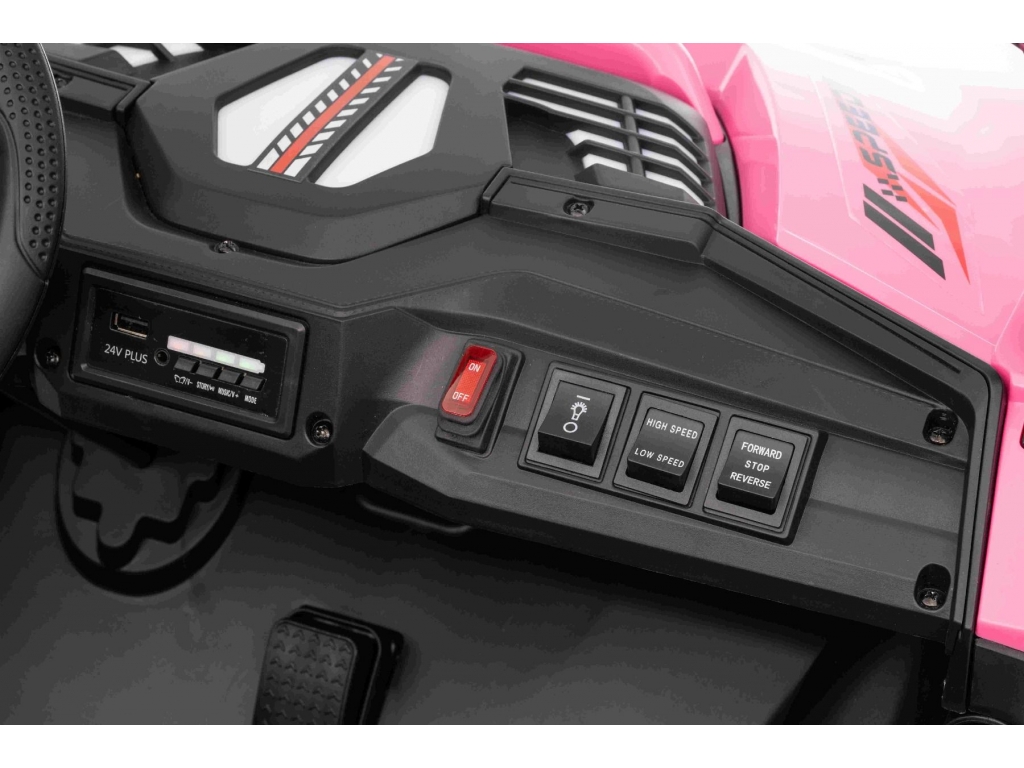 O pohodlie a bezpečnosť sa stará nastaviteľný bezpečnostný pás. Otváracia kapota zvyšuje herný zážitok a na palubnej doske nájdete aj indikátor stavu batérie, ktorý vás upozorní, keď je čas dobiť.