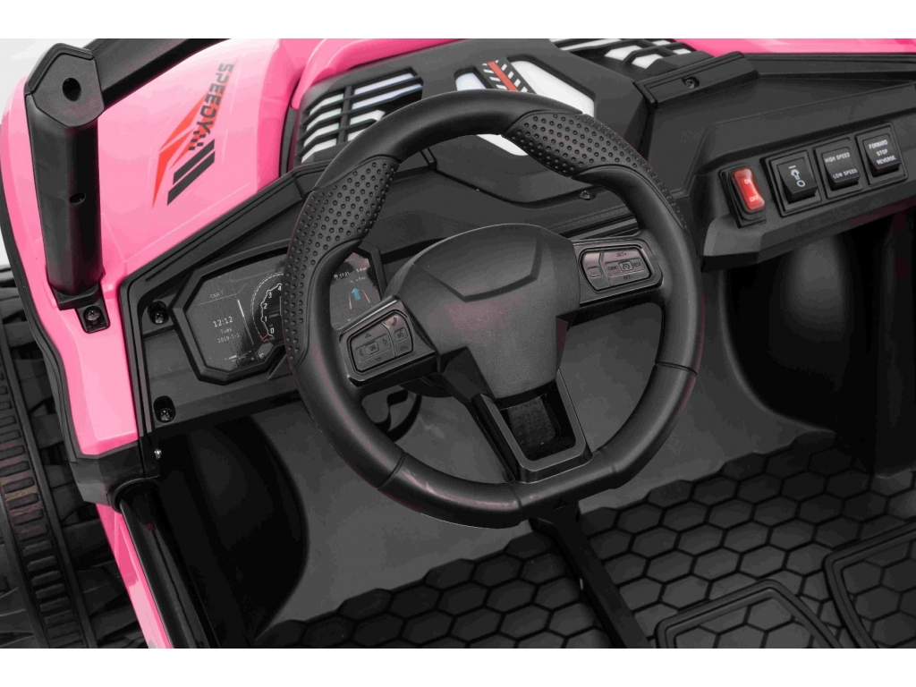 O bezpečnosť malého vodiča sa stará integrovaný bezpečnostný pás, ktorý ho udrží pevne na mieste počas celej jazdy, aj pri rýchlejších rozjazdoch či pri jazde po nerovnostiach. Celý model je navrhnutý v športovo-offroad štýle, ktorý nielen dobre vyzerá, ale zároveň podčiarkuje jeho skutočné schopnosti v teréne. T-REX Ride tak ponúka nielen zábavu, ale aj spoľahlivosť a bezpečnosť v každej situácii.