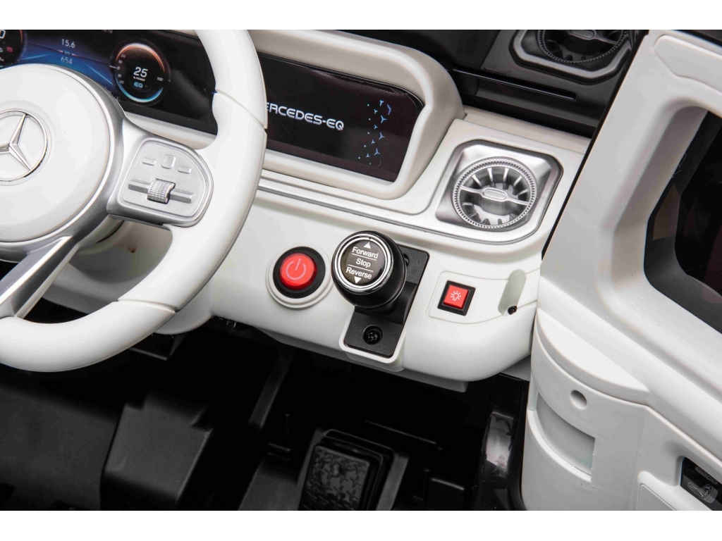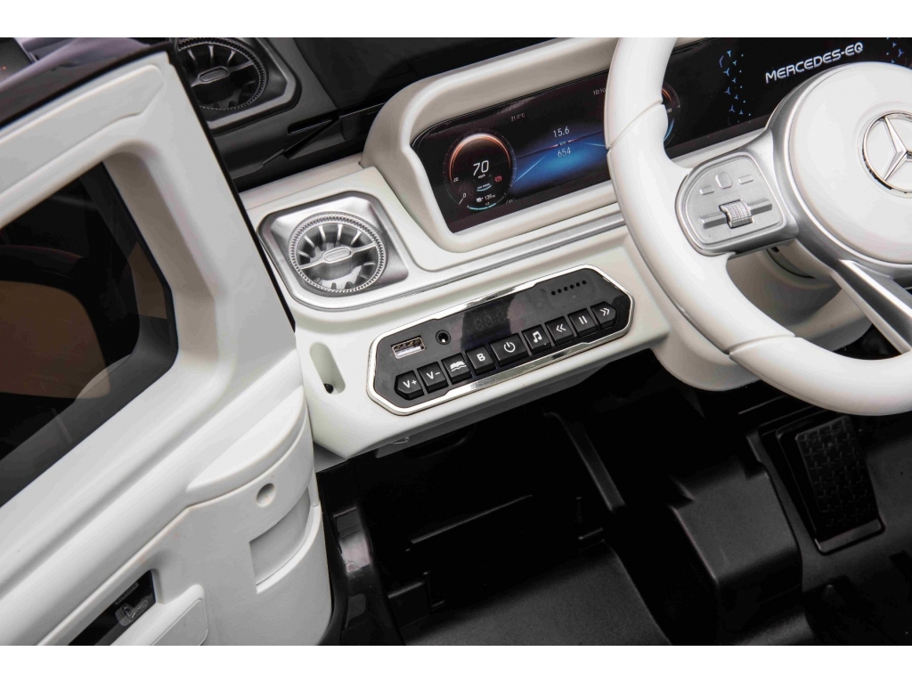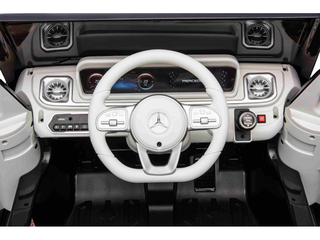 Najnovšie SUV od Mercedes-Benz triedy G v elektrickej verzii pre deti ponúka kombináciu luxusu a moderných technológií. Precízne spracovaný dizajn v štýle G‑triedy s podsvietenými prvkami karosérie je doplnený s funkciami ako MP3 prehrávač s USB/AUX vstupom, s možnosťou ovládať hlasitosť priamo na prehrávači alebo na volante. K dispozícii je aj zapínanie predných LED svetlometov vrátane zadných svetiel a ukazovateľ stavu kapacity batérie na multimediálnom MP3 Prehrávači, ktorý ukazuje výdrž vo voltoch.