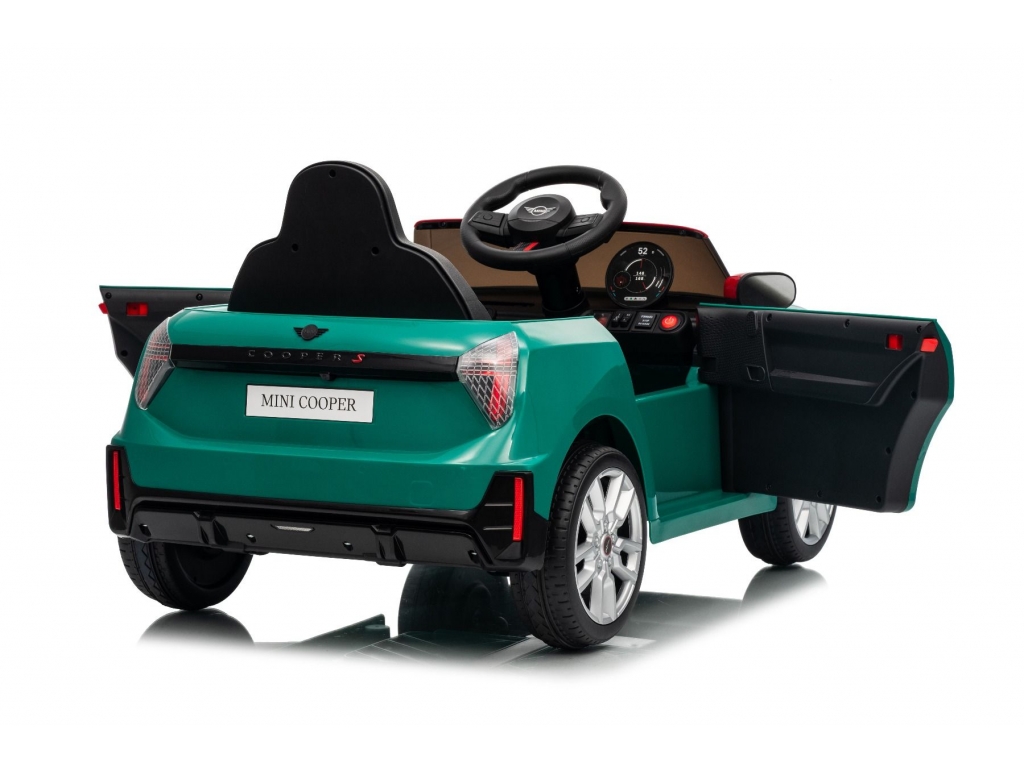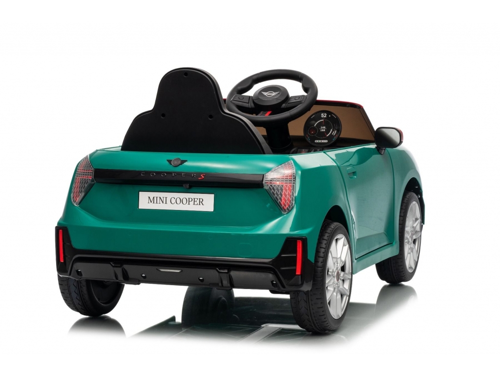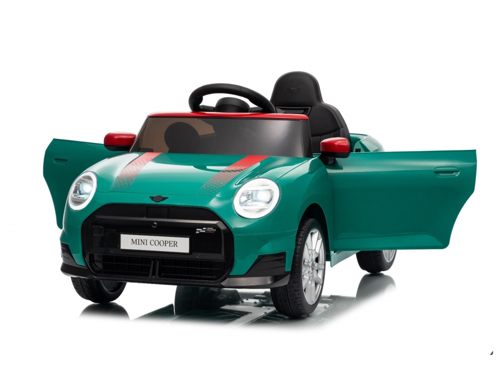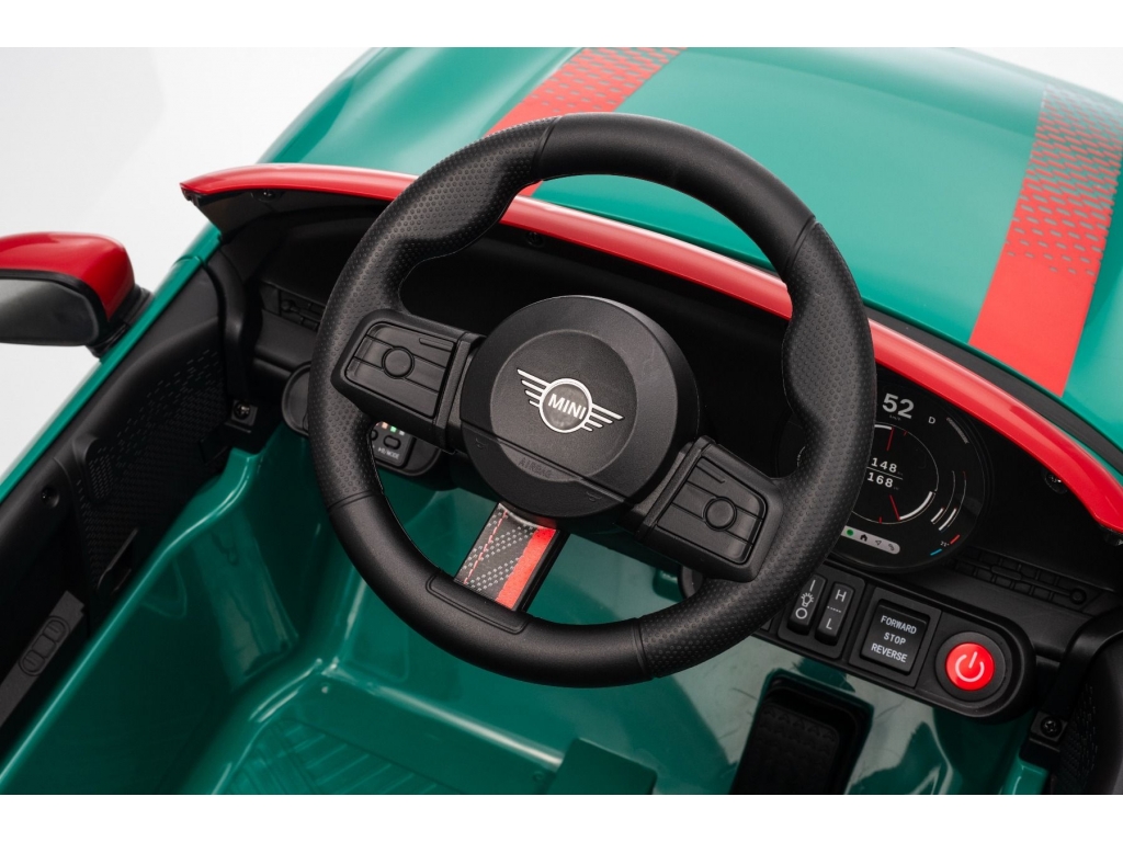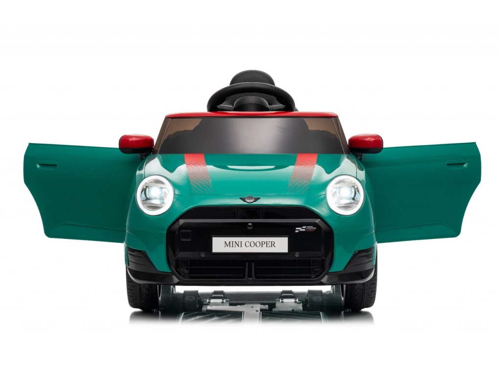Beneo Elektrické autíčko BMW Mini Cooper 12V, zelené, USB Vstup s Bluetooth pripojením na MP3 Prehrávači, 2,4 GHz diaľkové ovládanie, 2 x 25W Motor, Lítiová batéria, LED svetlá, ORIGINAL licencia
