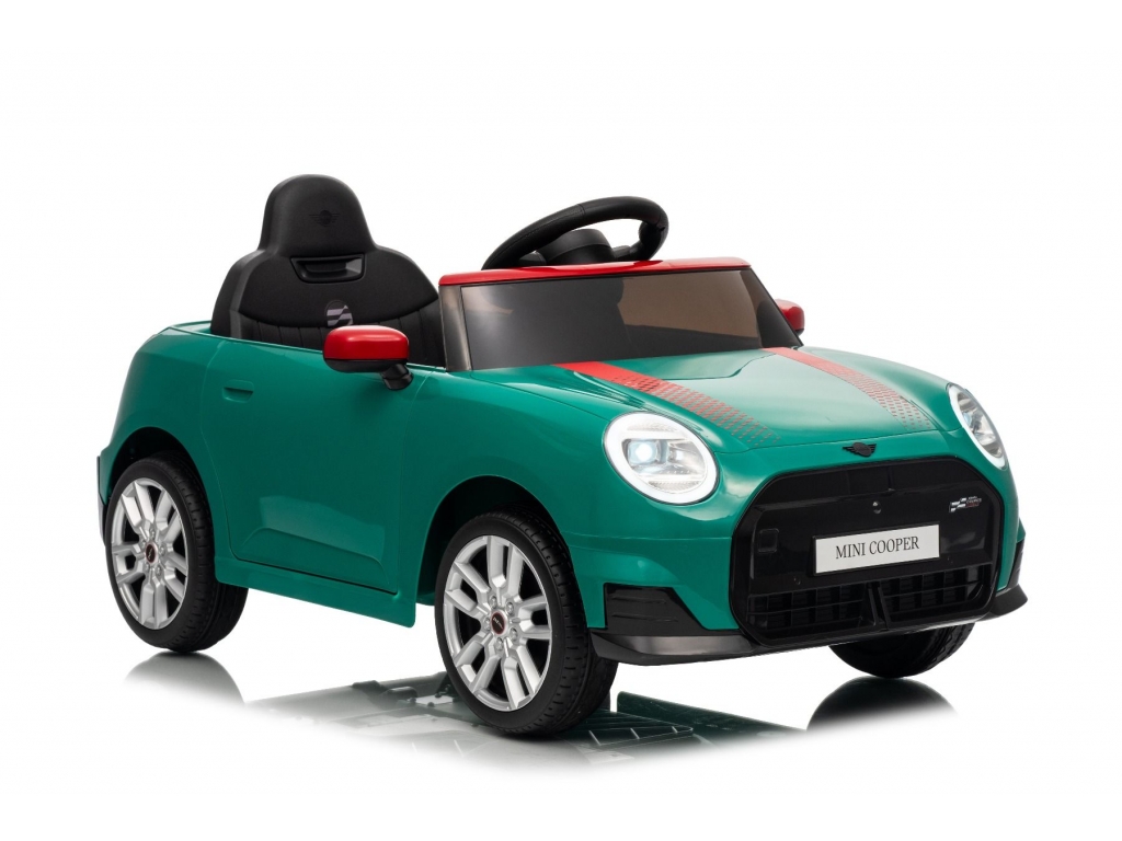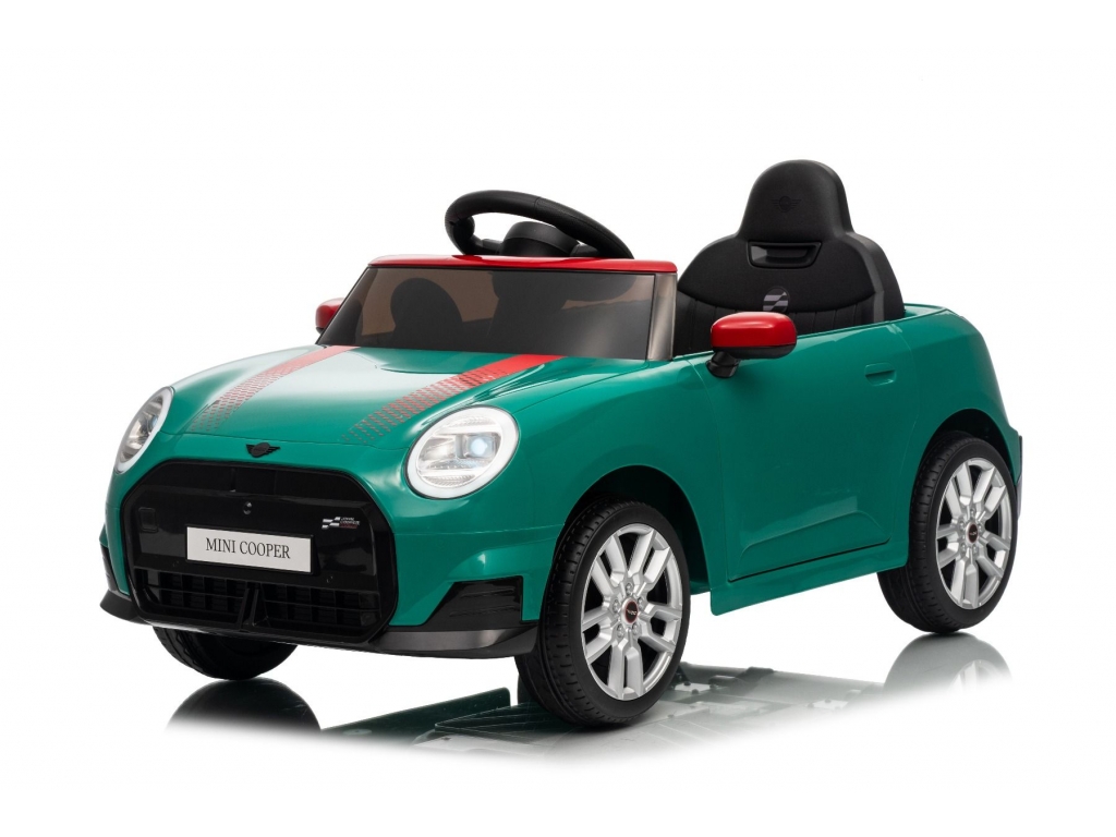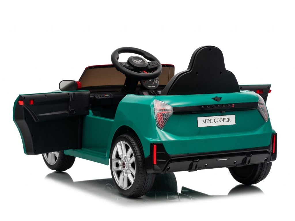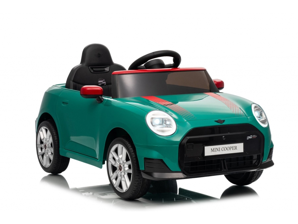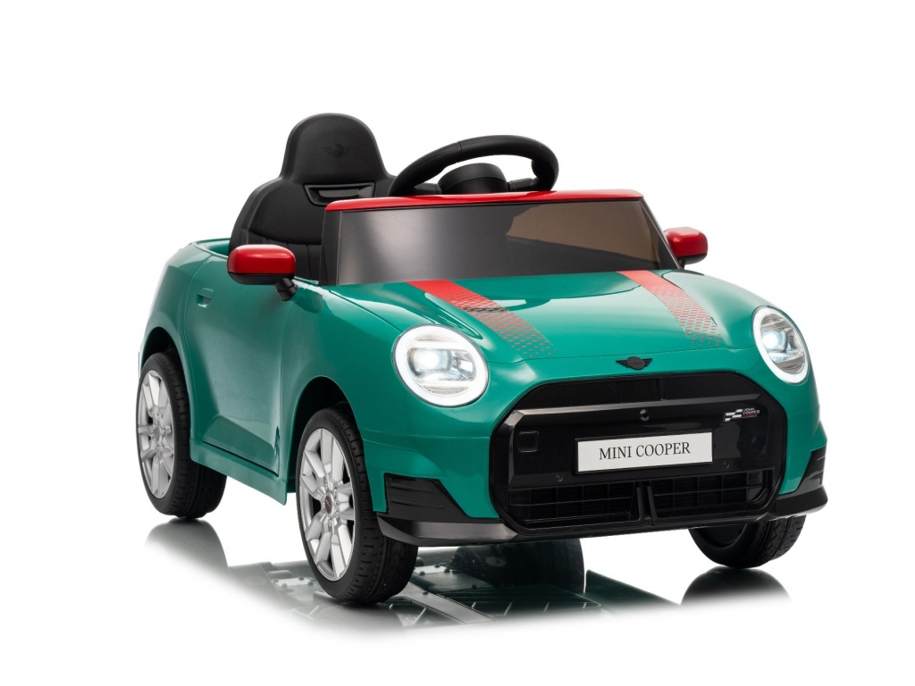 Beneo Elektrické autíčko BMW Mini Cooper 12V, zelené, USB Vstup s Bluetooth pripojením na MP3 Prehrávači, 2,4 GHz diaľkové ovládanie, 2 x 25W Motor, Lítiová batéria, LED svetlá, ORIGINAL licencia