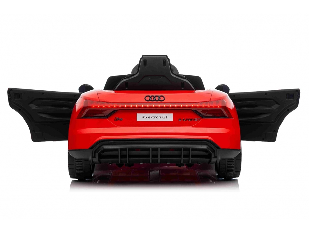 Beneo Elektrické autíčko Audi RS E-tron GT 12V, červené, široké jednomiestne sedadlo, 2,4 GHz diaľkové ovládanie, USB / AUX Vstup, Bluetooth, Odpruženie, Lítiová batéria, LED svetlá, 2 X 25W Motor, ORIGINÁL licencia