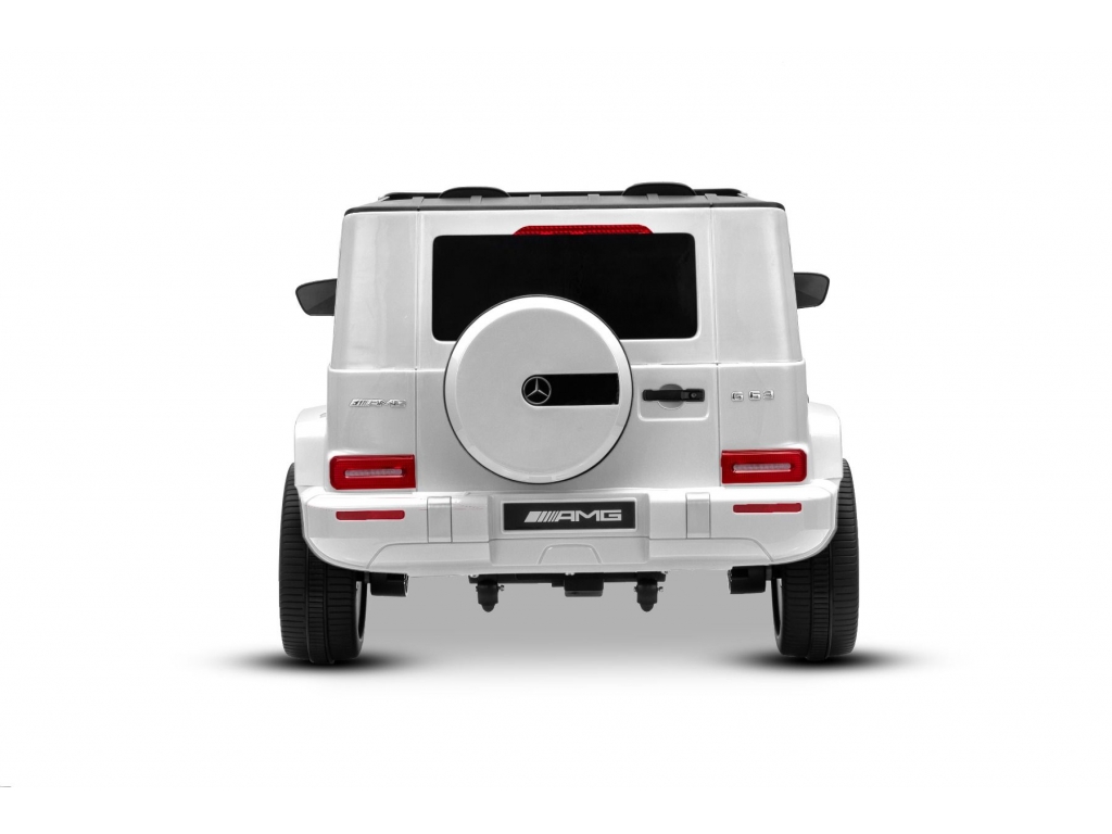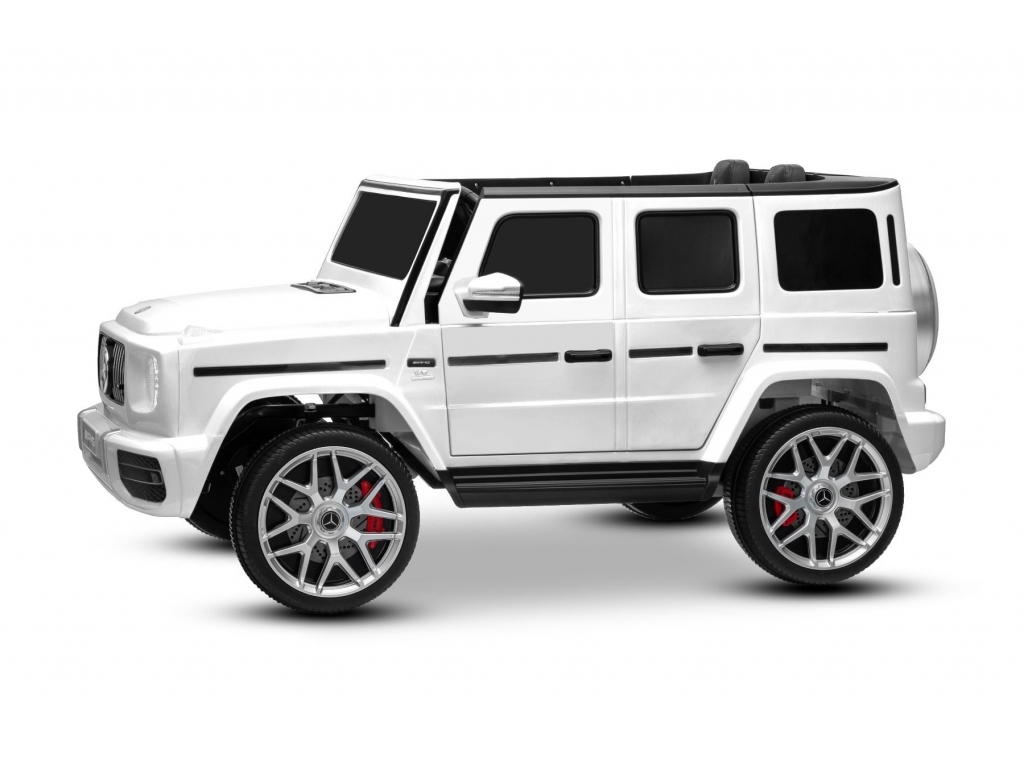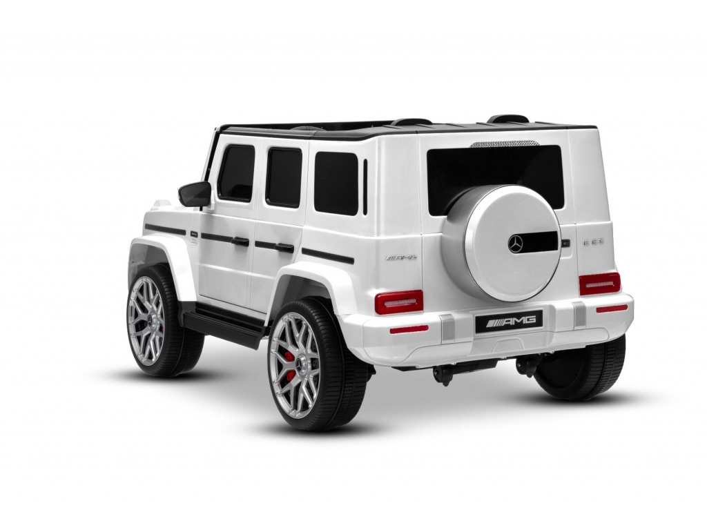 Deti si môžu užívať jazdu v ikonickom luxusnom elektrickom aute Mercedes G63 AMG, ktoré kombinuje elegantný dizajn a spoľahlivý výkon. Vozidlo je vybavené MP3 prehrávačom s USB/AUX vstupom a Bluetooth pripojením na prehrávanie vlastnej hudby, multifunkčným volantom a komfortnými koženkovými sedadlami, čo z neho robí ideálne auto aj pre dvoch pasažierov.