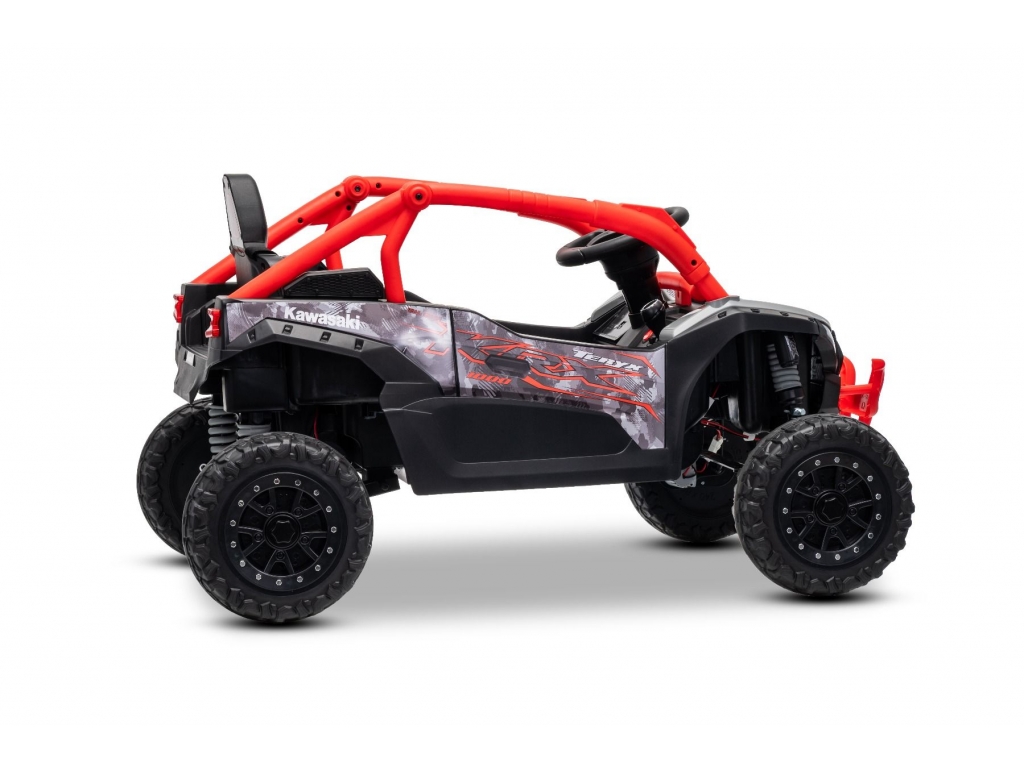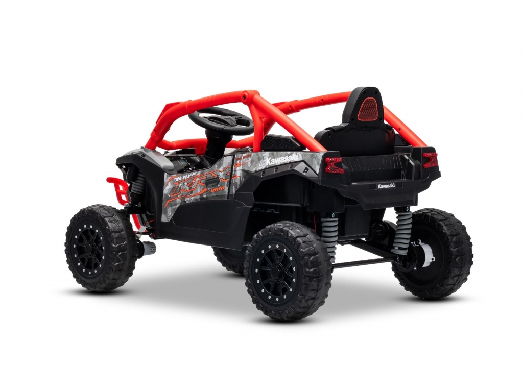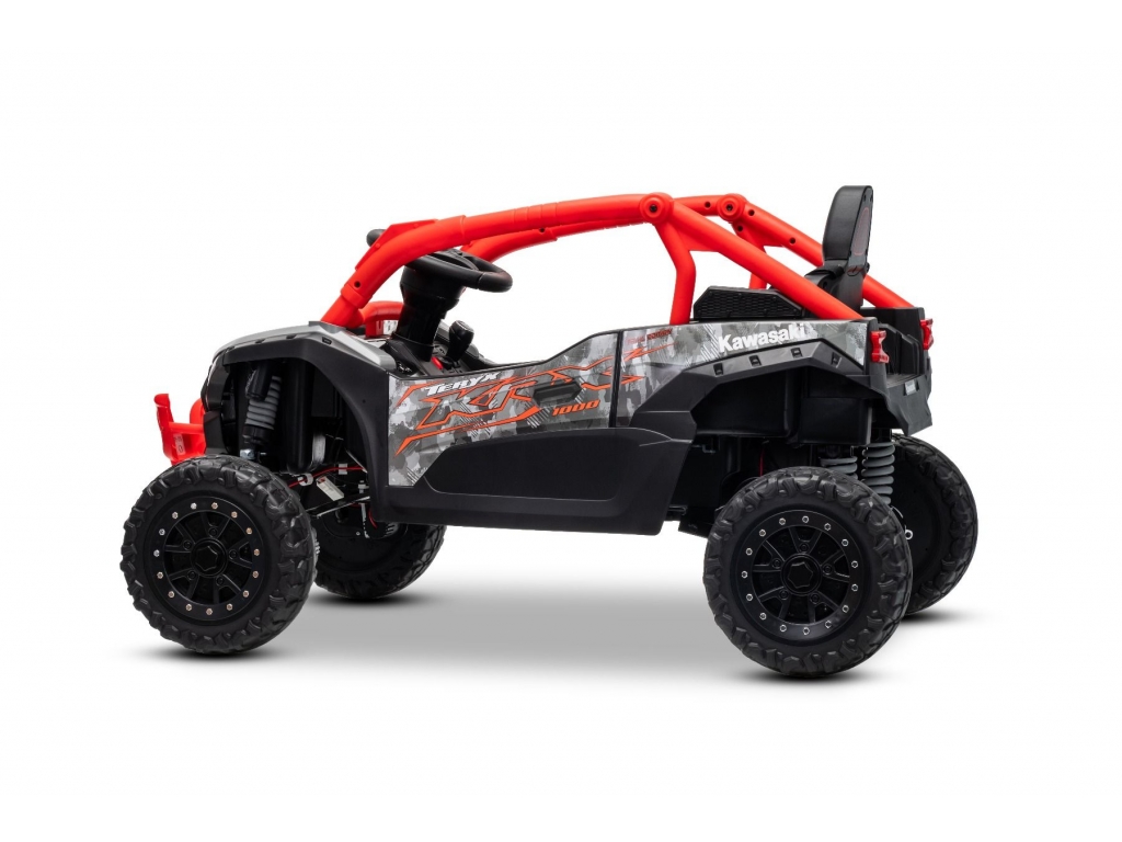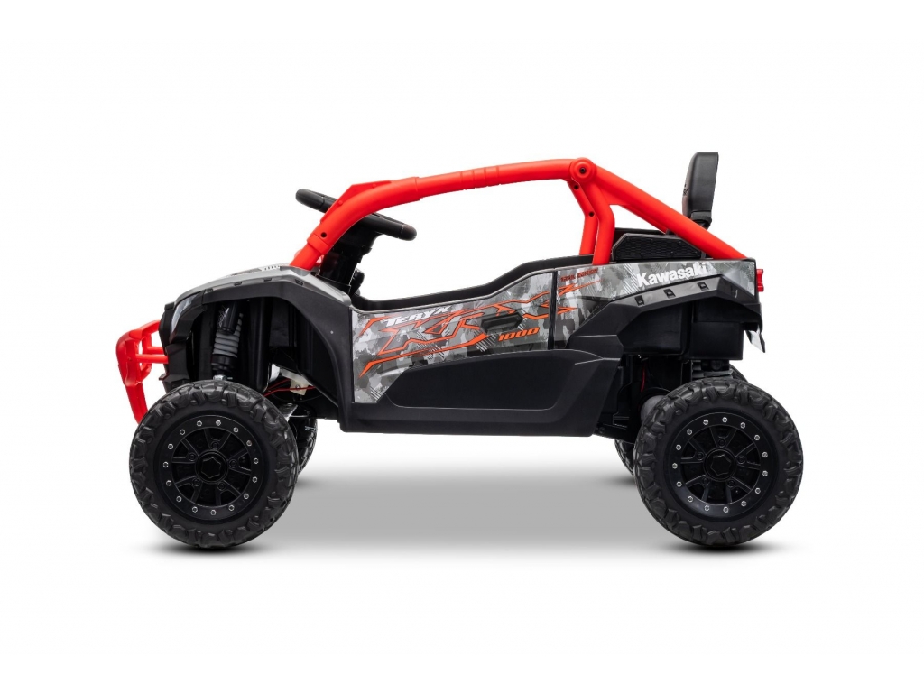 Elektrické autíčko Kawasaki TERYX KRX 1000 12V, červené, jednomiestne, odpružená zadná náprava, 2,4 Ghz diaľkové ovládanie, Lítiová batéria, 2 x 25W Motory, Otvárateľné ochranné rámy, MP3 prehrávač so vstupom USB/AUX, Licencované