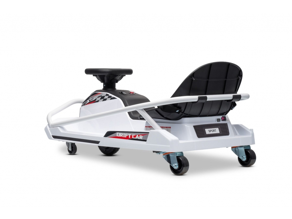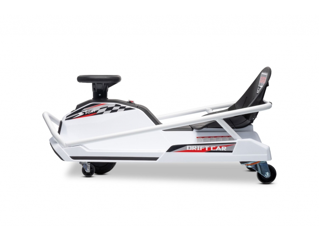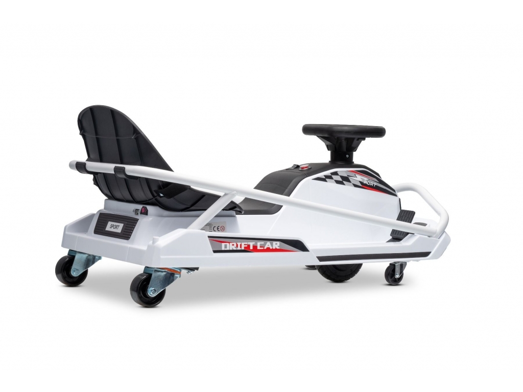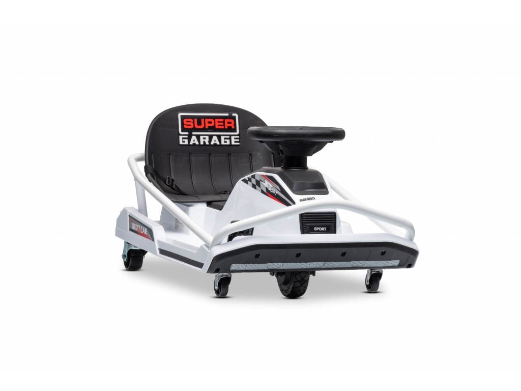 Beneo Motors driftovacia Motokára 24V, biela, 300W Bezkartáčový Motor, Lítiová batéria, Drift režim s rýchlosťou 14 Km/h, Masívna železná konštrukcia, Bezpečnostný pás, Športové sedadlo, Multifunkčný volant
