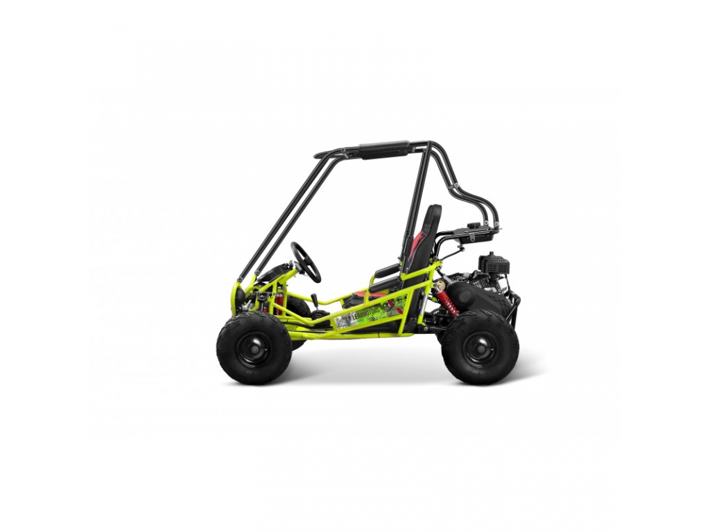 buggy majú na rozdiel od štvorkoliek volant a bezpečnostný rám. Ak hľadáte skutočný adrenalín, ste na správnom mieste. Buggy Predator je vhodná pre užívateľov s výškou cca od 100 cm do 160 cm, je vybavená bezpečnostným rámom a bezpečnostnými pásmi. Veľkou výhodou je nielen elektrický štartér, ktorým sa nechá buggy. naštartovať a vypnúť, ale aj predné osvetlenie a nožná brzda. Buggy sú dvojmiestne s pohonom zadných kolies. Súčasťou je diaľkové ovládanie vďaka ktorému môžete buggy na diaľku vypnúť. Predné osvetlenie LED. Maximálna rýchlosť až 45 km/h.