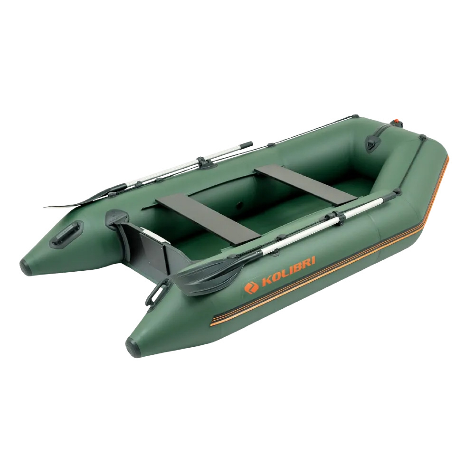Čln s air-deck podlahou Kolibri KM-280 A. Séria malých motorových člnov, použiteľných pre pohon veslami, ale hlavne pre pohon závesným motorom. Majú pevné zadné čelo tzv. zrkadlo na upevnenie motora. Člny majú vysokotlakú Air-deck podlahu, ktorá znižuje váhu člna a zjednodušuje manipuláciu s člnom. Rozbalenie a zbalenie člna trvá maximálne 10-15 minút. Materiál použitý na výrobu je 5 vrstvové PVC hustoty 950g/m2.