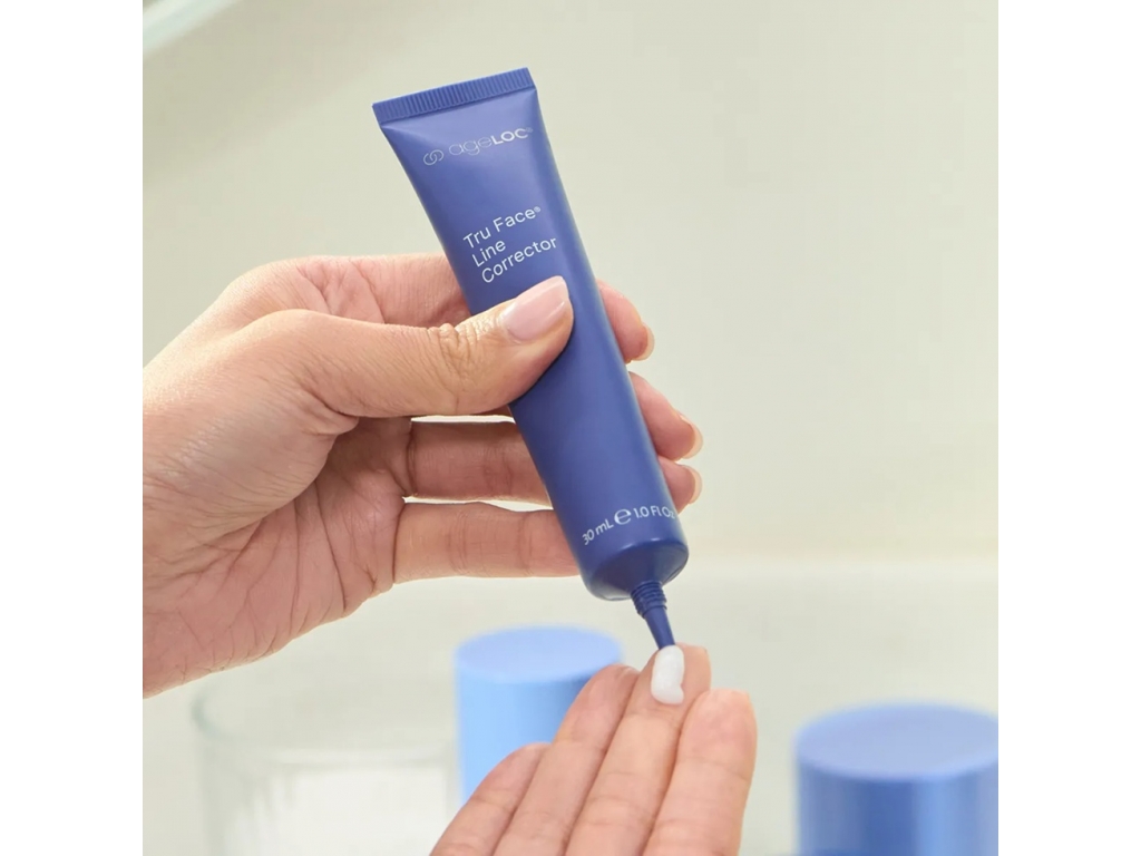 ageLOC Tru Face Line Corrector je špeciálne navrhnuté sérum pre cieľové oblasti, vytvorené na báze pokročilých peptidov, ktoré viditeľne zjemňujú vzhľad jemných línií a vrások, najmä v okolí úst a očí.