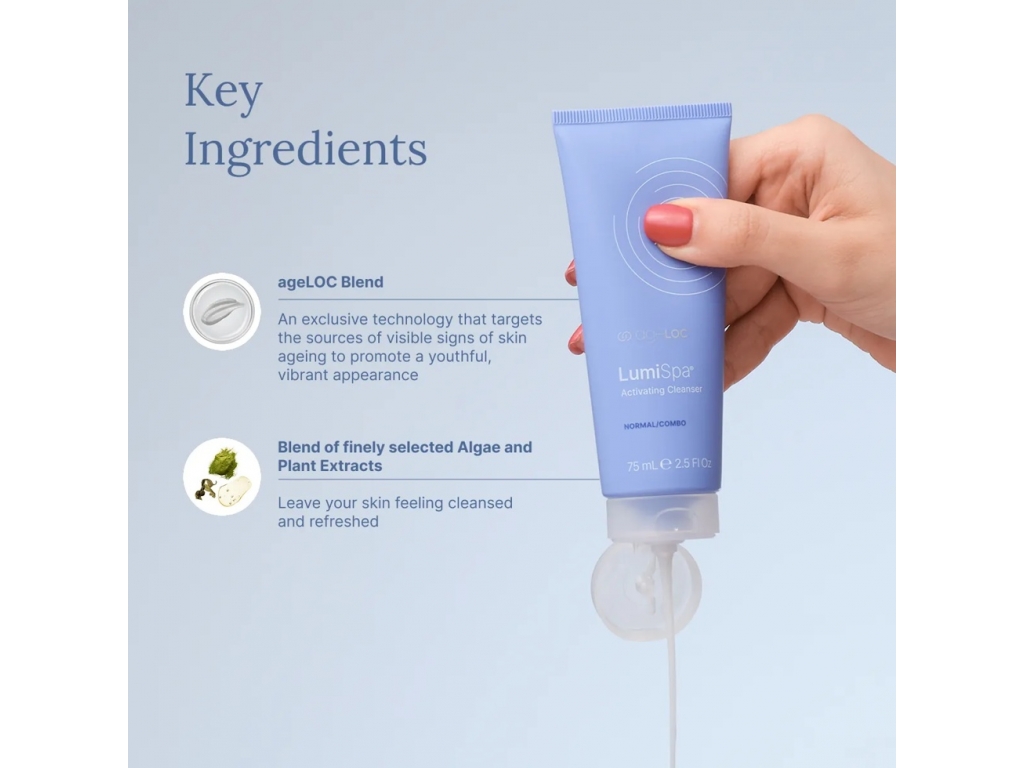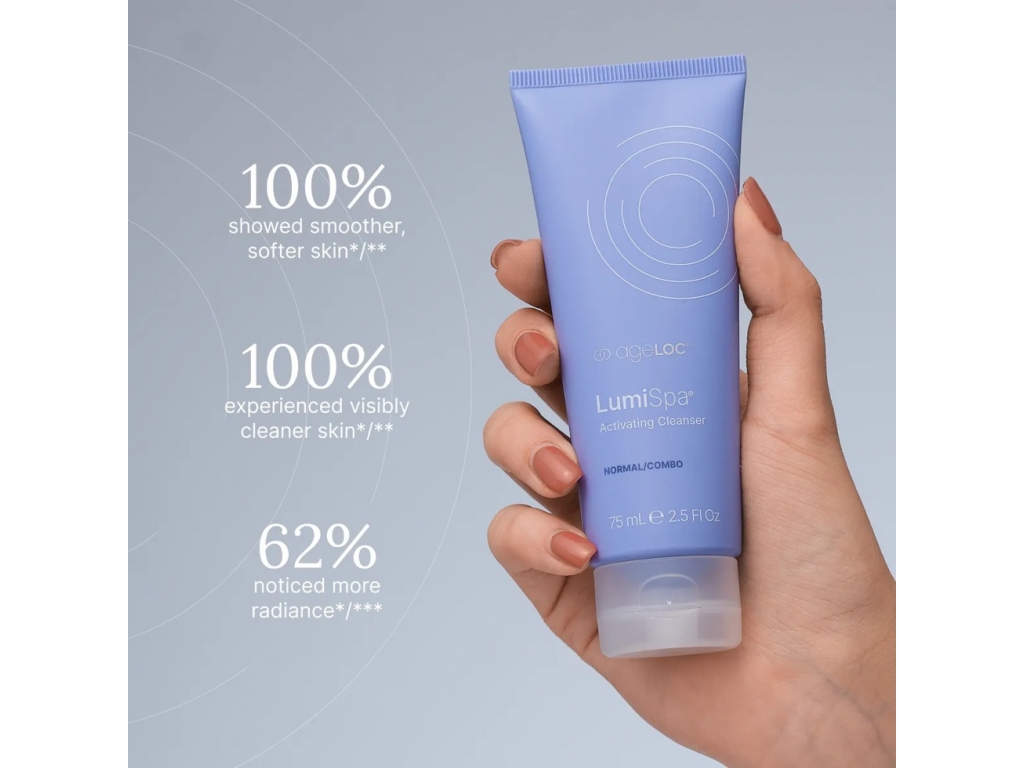 Produkt ageLOC LumiSpa Activating Cleanser je základnou súčasťou systému LumiSpa iO a dokonalým partnerom pre váš prístroj. Funguje ako ideálny podklad, aby sa váš prístroj LumiSpa dokázal jemne a zároveň efektívne kĺzať po pokožke a zanechal vašu pleť hebkú, vyhladenú a mladistvú. Je dostupný v piatich variantoch zloženia – pre normálnu až zmiešanú, suchú, citlivú, mastnú a problematickú pleť. Je zostavený tak, aby spĺňal jedinečné potreby vašej pleti.