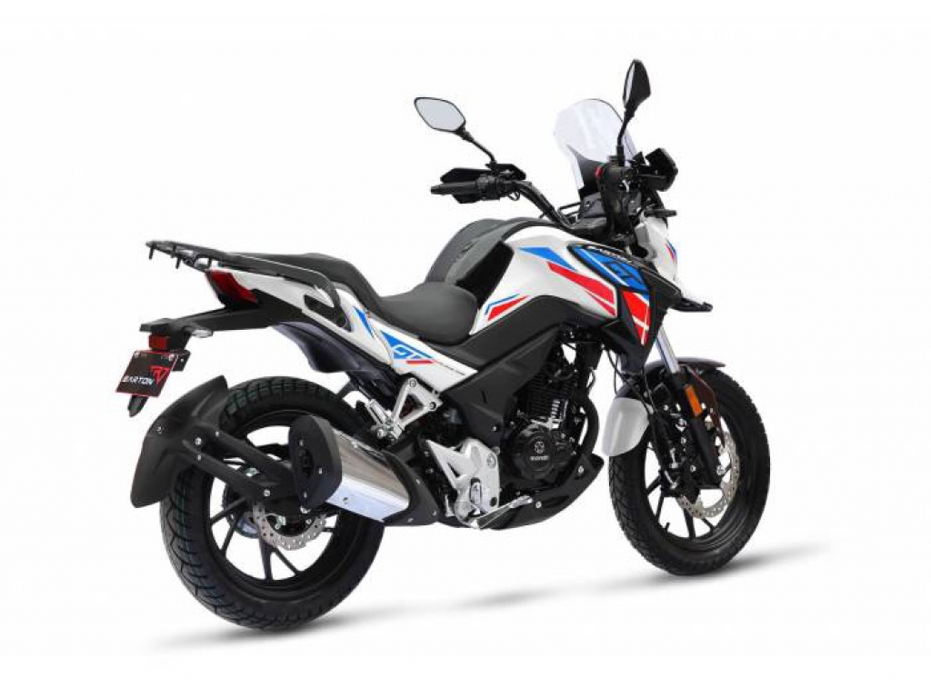 Nový Barton Grand Tourer 2022 Enduro GT 125CC 4T Barton Motors je návrhom pre motorkárov túžiacich po dobrodružstvách plných emócií, vrátane tých ďaleko od domova. Motor s objemom 125 ccm poskytuje možnosť jazdy pre držiteľov A-licencie a zároveň ponúka zvýšený výkon 10,5 HP, ktorý zaisťuje dynamiku a potešenie za všetkých podmienok. Barton GT je vďaka nízkej hmotnosti 120 kilogramov dobre ovládateľný ako na ceste, tak v meste. Zvýšená svetlá výška, vysoké čelné sklo, rozsiahly držiak batožiny alebo možnosť montáže nosiča s kuframi robia z tohto motocykla perfektné vozidlo na každodenné cesty do práce aj na dlhé turistické výlety vo dvojici.