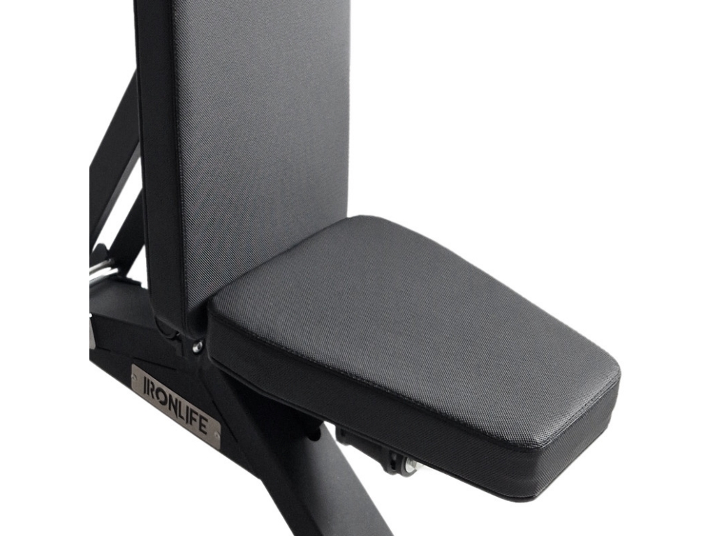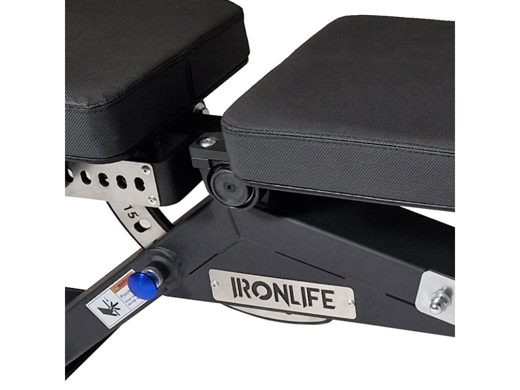 Doplňte svoju posilňovňu o túto polohovaciu lavicu IRONLIFE pre mnohonásobný tréning. Lavica je určená na domáce cvičenie, ale vďaka svojmu kvalitnému spracovaniu ju ocenia aj jedinci, ktorí sú zvyknutí trénovať v komerčných fitness centrách. Pevná konštrukcia je vyrobená z kvalitnej ocele s práškovým lakovaním a základňu podporujú pevné nohy pre zvýšenú stabilitu. Oceníte aj prepracované detaily, ako je rukoväť z nerezovej ocele, laserom rezané číslovanie polôh, zosilnené polstrovanie a príjemné čalúnenie alebo zadné transportné kolieska, ktoré umožnia lavicu kedykoľvek ľahko presunúť.
