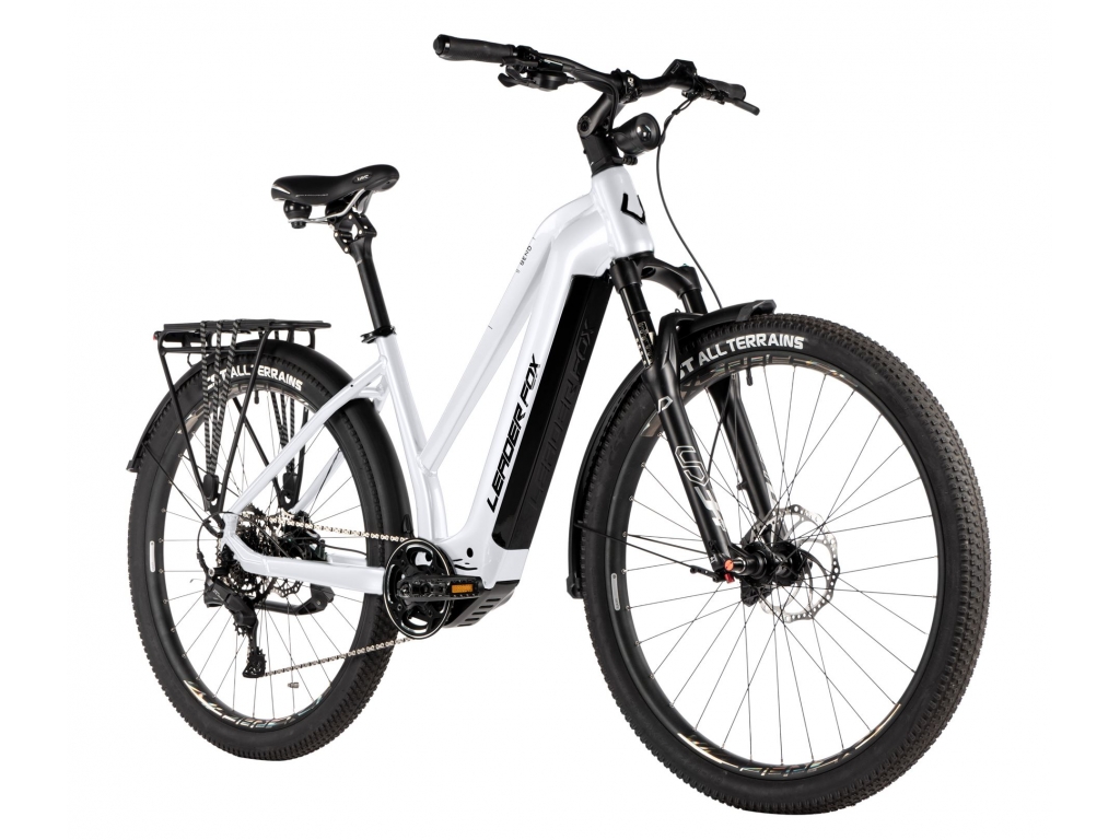 Novinka roka 2024. Dámsky krosový elektrobicykel Leader Fox BEND 28" 2024 v hliníkovom ráme, odpruženou prednou vidlicou, kotúčovými brzdami, blatníkmi a zadným nosičom. Univerzál na ceste aj do terénu. Možnosť dokúpenia kompatibilného predného nosiča a popruhu.