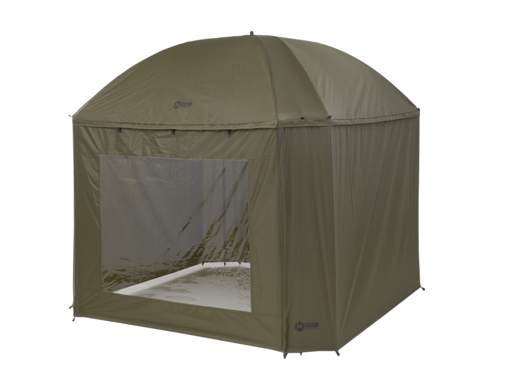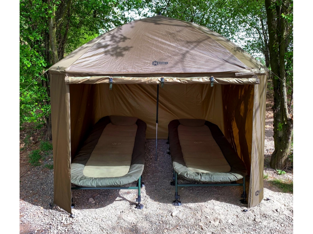 Kompletne zakrytý dáždnik Mivardi štvorcového tvaru s obrími rozmermi. Možno do neho umiestniť dve veľké rybárske lehátka. Rozmerom dáždnika je plne prispôsobená jeho konštrukcia a použité materiály.