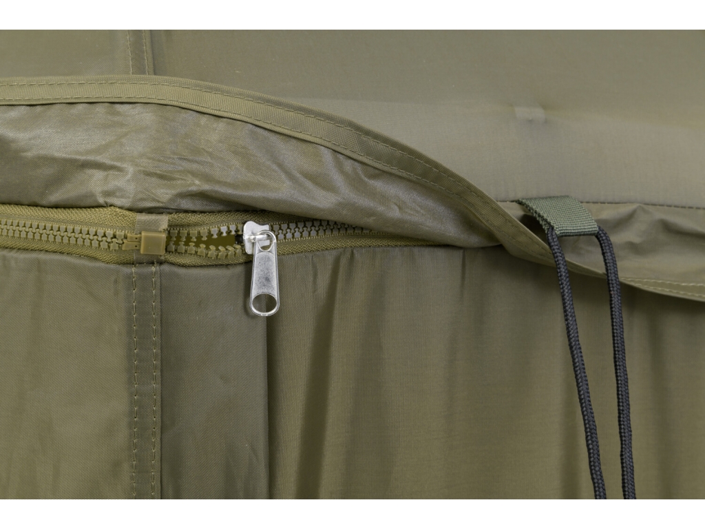 Kvalitný nylonový plášť ponúka veľmi nízku hmotnosť, nekompromisný vodný stĺpec 8000mm a kompletne podlepené švy. Bočnica je po celom obvode pripevnená robustným zipsom, krytým odkvapničkou.