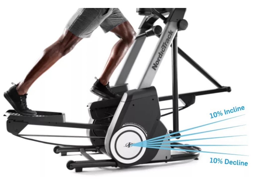 Trenažér NordicTrack FreeStrider FS9i je skvelý trenažér vďaka svojmu inovatívnemu riešeniu. Spája tri typy trenažérov do jedného a preto je naozaj jedinečný a veľmi obľúbený. Dokonale sa prispôsobuje, a pri tom nie je vôbec potrebné nastavovať krok, jednoducho sa sám prispôsobí podľa vášho pohybu a tlaku do pedálu. Krok môže byť dlhý až 81 cm. Komfortný, plynulý a tichý chod zaisťuje vyvážený zotrvačníkový systém s hmotnosťou 24 kg (zotrvačník 9 kg) a moderná magnetická brzda zaisťuje komfortný, plynulý a tichý chod trenažéra. Záťaž sa nastavuje elektronicky v 26 stupňoch. Trenažér je vybavený 10" dotykovým displejom Smart HD, MP3 prehrávačom, ventilátorom pre osvieženie pri tréningu, držiakom na fľašu, transportnými kolieskami a vyrovnávačom nerovnosti. Trenažér je ideálny pre všetkých užívateľov akejkoľvek výšky a jeho masívny rám má nosnosť až 170 kg.