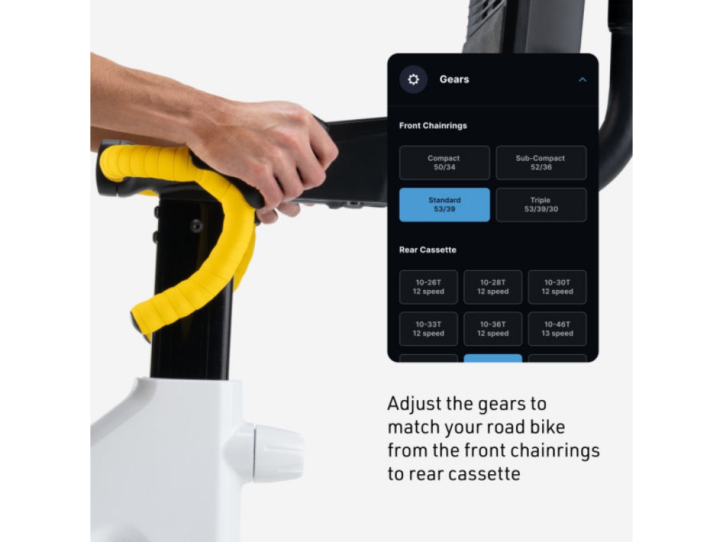 Sledujte svoj výkon v reálnom čase. Nastavte si cieľové watty a trenažér automaticky upraví prevody podľa vašej kadencie, aby ste udržali požadovaný výkon.