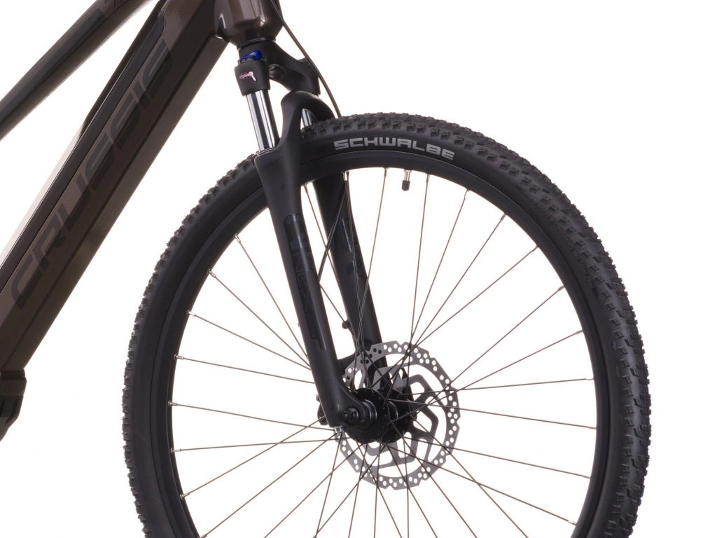 Napájanie zabezpečuje batéria LG Li-Ion 518 Wh (14,4 Ah) - dokáže poskytnúť dojazd až 130 km v závislosti od podmienok a zvoleného režimu. Bicykel je vybavený vidlicou SUNTOUR NEX HLO DS 700c s uzamknutím, ktorá účinne tlmí nerovnosti, a pneumatikami SCHWALBE Smart Sam, ktoré odolajú cyklotrasám a spevneným lesným cestám.