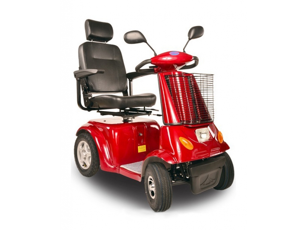 Štvorkolesový elektrický invalidný vozík s malým košom Selvo 4800. Tento invalidný elektrovozík je prispôsobený pre potreby osôb so zhoršeným zdravotným stavom. Pomocou páčok na riadidlách veľmi jednoducho volíte rýchlosť pojazdu, ďalej máte možnosť max. rýchlosť obmedziť kolieskom (potenciometrom). Tento model ponúkne úložný priestor v nákupnom koši na riadidlách a veľmi jednoduchú možnosť nasadania, vďaka otočnému a polohovateľnému sedadlu, ktoré tvoria pohodlnú oporu celého chrbta. Lakťové opierky po oboch stranách pomáhajú ešte vyššiemu komfortu.
