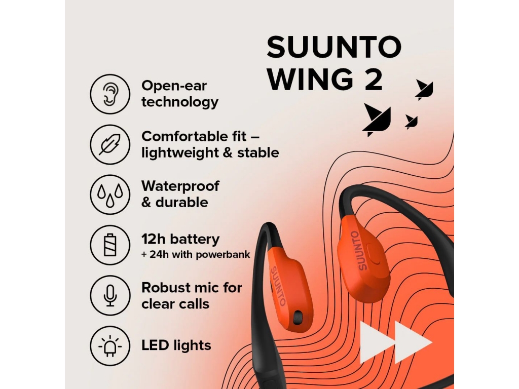 Buďte v obraze, buďte o krok vpredZažite istotu úplného situačného uvedomenia. Dizajn sluchátek Suunto Wing 2 s otvoreným uchom vám umožňuje predvídať blížiace sa vozidlo, počuť bežca alebo cyklistu, alebo si len vychutnať spev vtákov. Motiváciu získate z hudby a pokoja v duši, ktorý pramení z toho, že nie ste nikdy odrezaní od svojho okolia.
