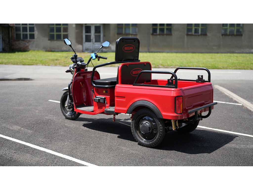 Pracovná trojkolka Selvo Work 10L so špeciálnou batériou LiFePO4 českej výroby. Táto batéria má väčšiu kapacitu 4,75 kWh a dojazd môže byť až 180km. Navyše vďaka automotive technológii je možné ju nabíjať aj v mraze až do -15 °C. K tomuto variantu batérie nie je potrebné nič prikupovať.