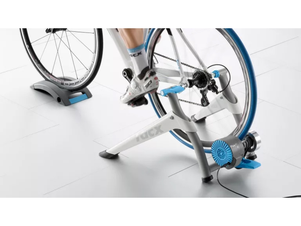 Na celoročné trénovanie a plne interaktívny zážitok z jazdy na indoorovom bicykli ponúka trenažér TACX Flow Smart všetko, čo potrebujete. Jeho dizajn na kolieskach umožňuje jednoduché nastavenie a skladovanie. Pripojí sa dokonca k vašim obľúbeným aplikáciám, ako sú Zwift, Tacx a TrainerRoad.