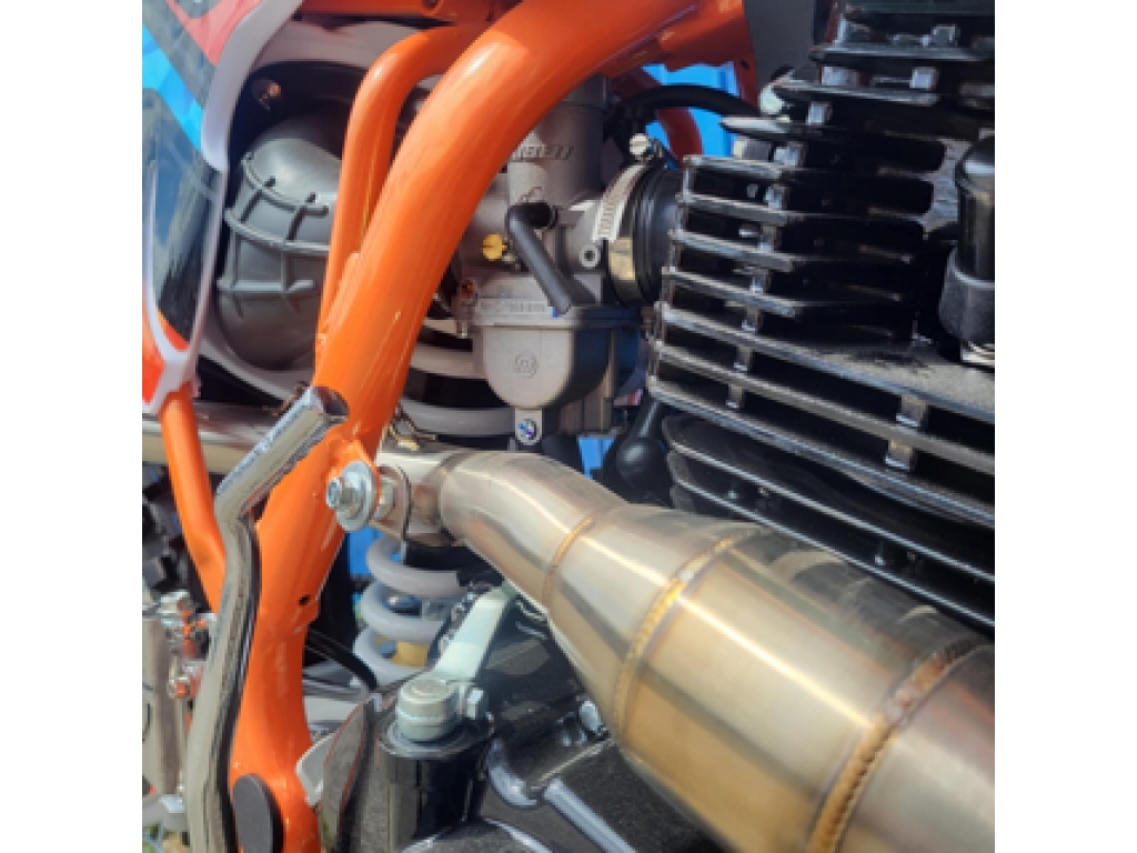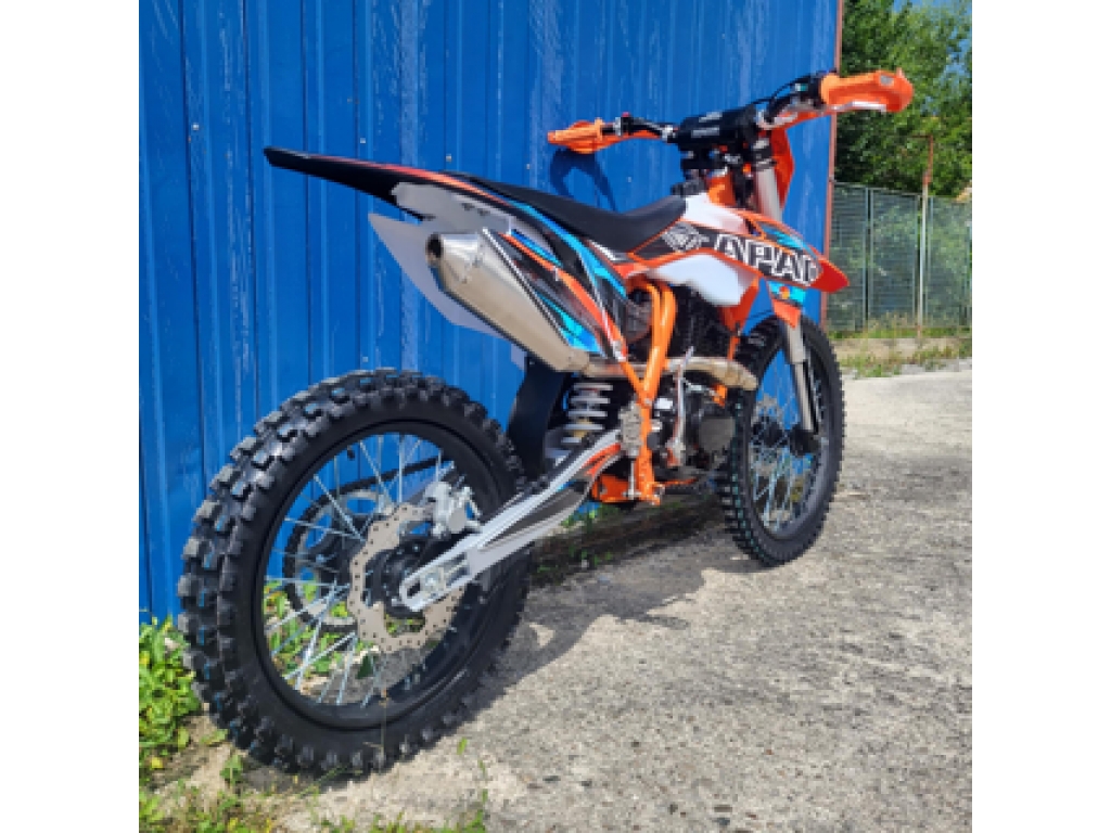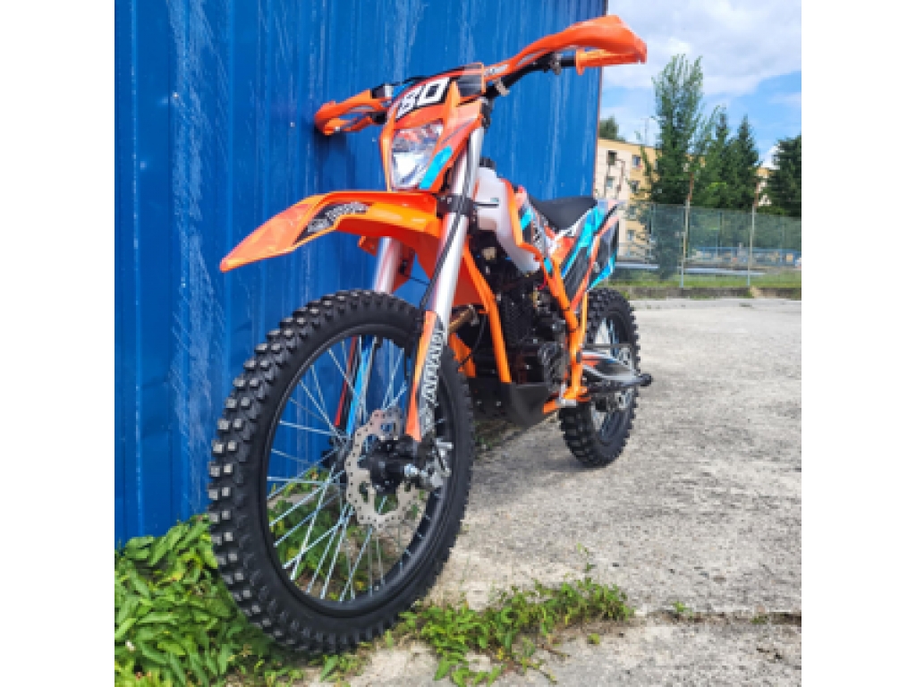Motorka je vybavená prednou a zadnou hydraulickou kotúčovou brzdou, s masívnymi prednými olejovými tlmičmi a zadné odpruženie s nastaviteľnou tuhosťou (záruka komfortnej jazdy aj v ťažkom teréne), masívnym oceľovým rámom s práškovým nástrekom cross-frame a ladeným výfukom, ktorý je zárukou úchvatného zvuku. Osadené pneumatiky boli vybrané pre jazdu v teréne. Motorka obsahuje predné svetlo.