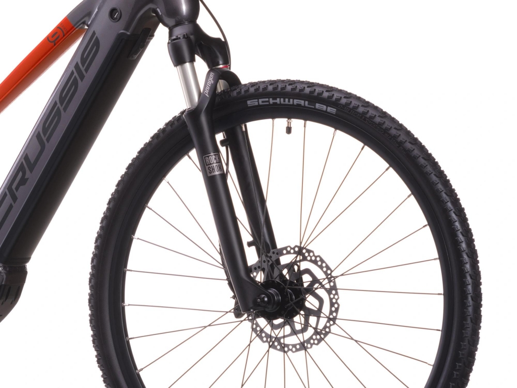 Napájanie zabezpečuje výkonná batéria LG Li-Ion 715 Wh (19,88 Ah) plne integrovaná do rámu. Trakcia elektrobicykla je plynulá vďaka vidlici ROCKSHOX FS Paragon Gold RL Solo Air (zdvih 65 mm), širokým pláštom Schwalbe Smart Sam a hydraulickým brzdám Shimano Deore, ktoré vás udržia v jazde aj v náročnejších podmienkach.
