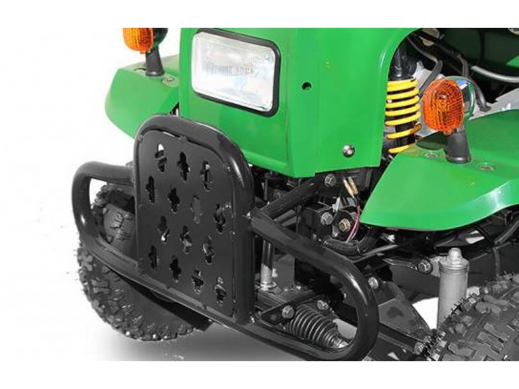 Detský benzínový traktor Sunway ATV Traktor Nitro 110CC s vozíkom so 4-taktným motorom 110cc. Predné kolesá 6", zadné kolesá 8", robustný predný nárazník a bezpečný rám, elektrický štartér, predné i zadné hydraulické kotúčové brzdy, predné aj zadné osvetlenie, nastaviteľné sedadlo.